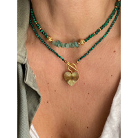 สร้อยคอชุบทอง18K รูปหัวใจพร้อมตะขอเกี่ยวสร้อยคอลูกปัดมาลาไคต์สีเขียววินเทจสำหรับผู้หญิง