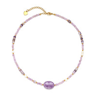 สร้อยคอลูกปัดสเตนเลสกลมอเมทิสต์ชุบทอง18K สร้อยคอลูกปัดมุกน้ำจืด