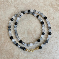 สร้อยคอลูกปัดหินกลมธรรมชาติขนาด6มม. สร้อยคอลูกปัดหินควอตซ์สีดำ